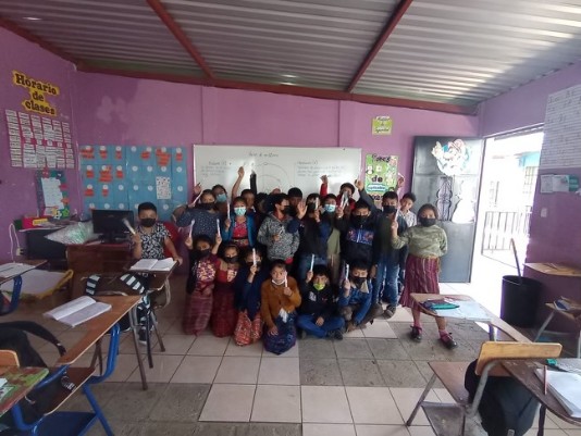 A classroom thankful for the donation of toothbrushes