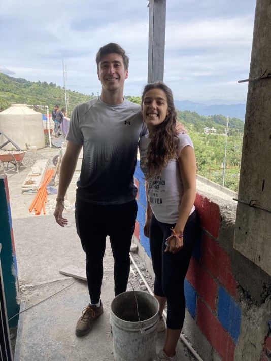 Two wonderful volunteers from Spain helping to build a new section of the school.