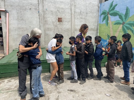 Students giving farewell hugs on my last day for this trip.